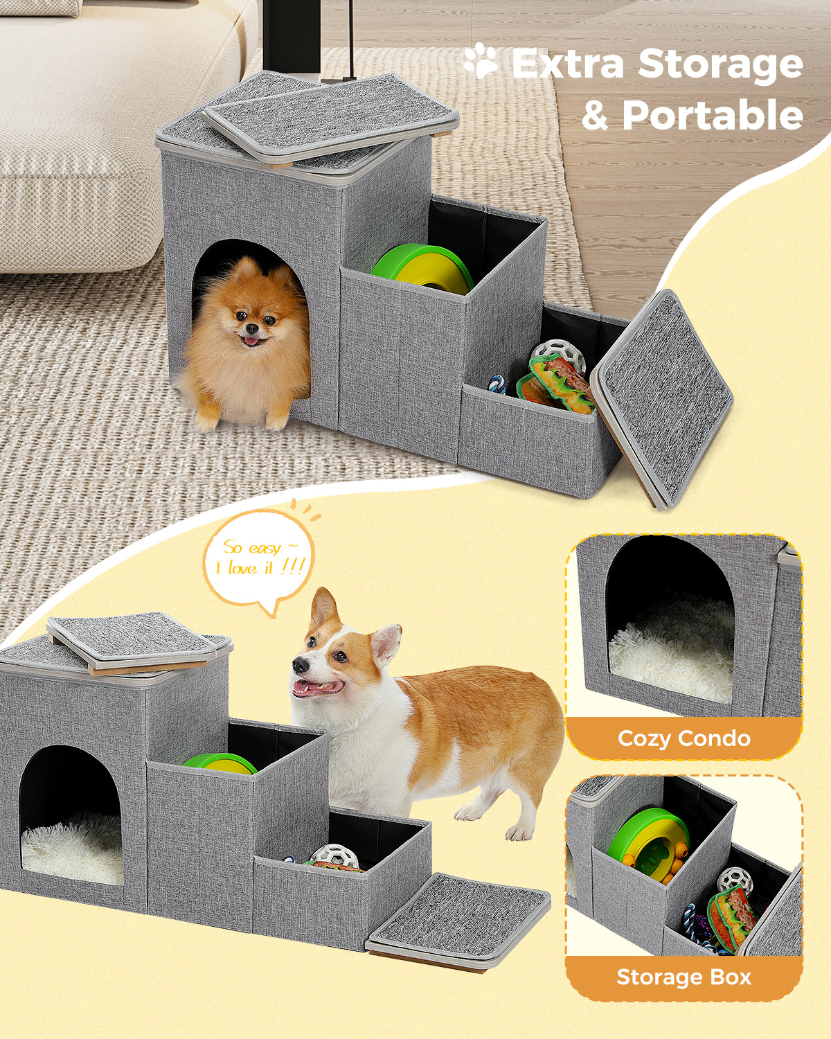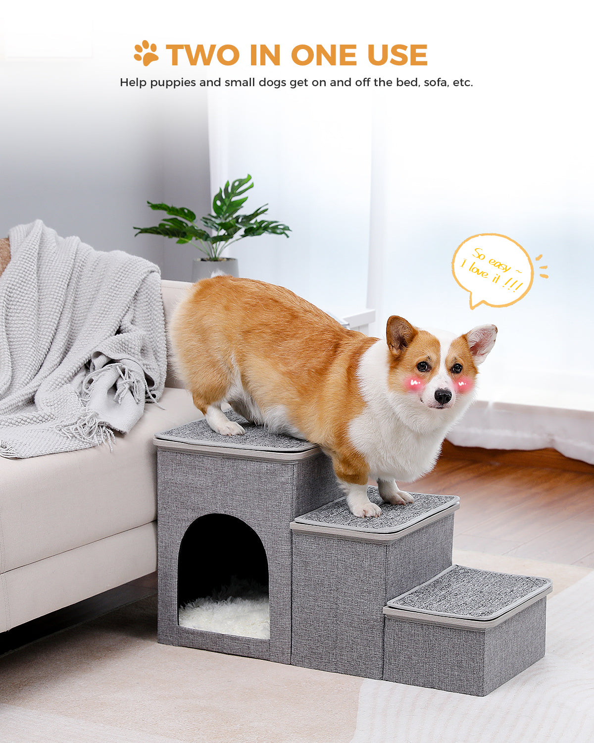 Design due-in-uno: Queste scale per animali domestici funzionano non solo come scalini per i letti alti, ma offrono anche al vostro piccolo amico a quattro zampe un comodo rifuso. I gradini sono ricoperti da coperchi rimovibili; i primi 2 scalini di queste scale sono progettati come scatole di archiviazione, dove i proprietari possono riporre giocattoli per cani, cibo per animali o qualsiasi altra fornitura per animali domestici.